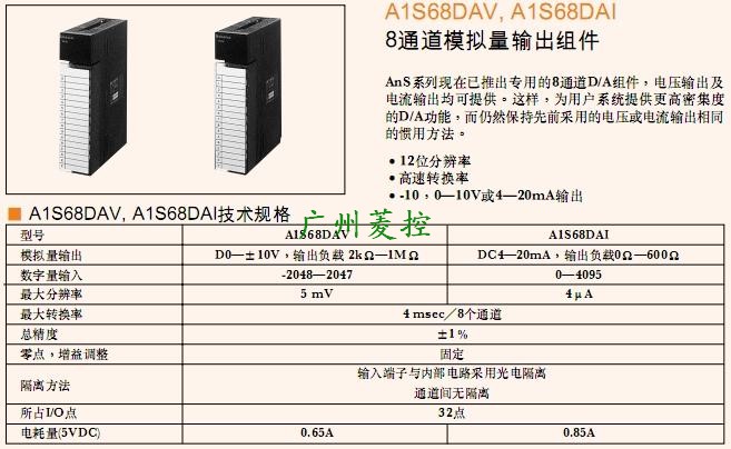 三菱模拟量输出模块 A1S68DAV
