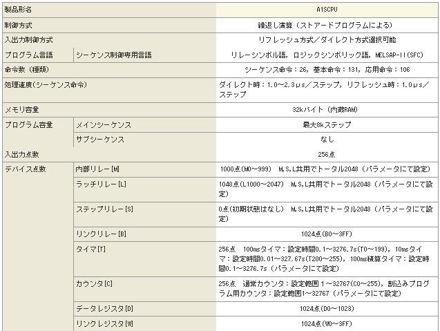 三菱CPU单元A1SCPU技术规格三菱CPU单元A1SCPU技术规格
