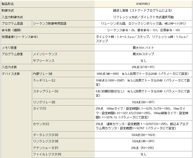 三菱CPU单元A1NCPUR21技术规格三菱CPU单元A1NCPUR21技术规格